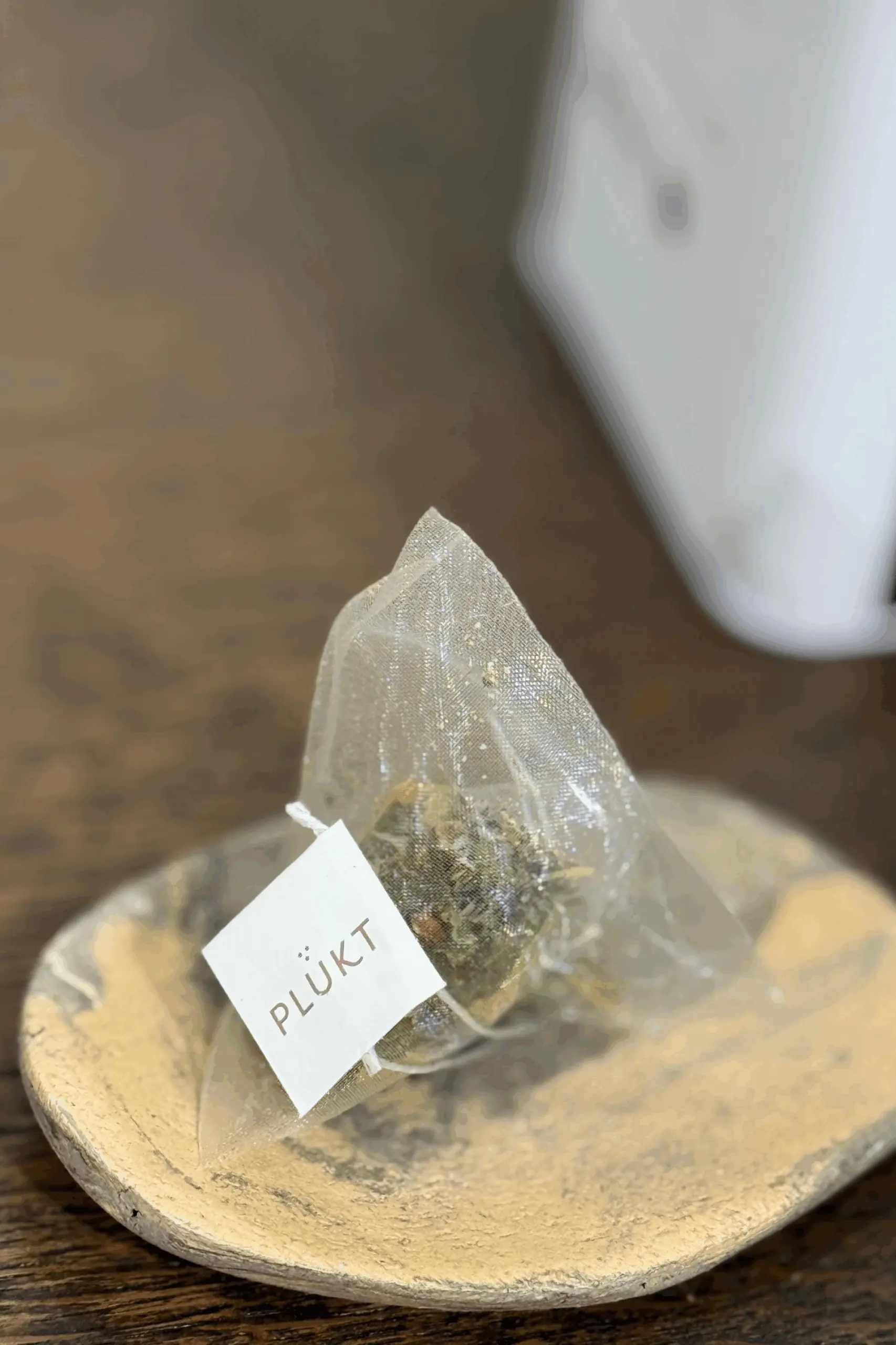 DABAI DRAUDZĪGI! PLŪKT piramīdas tējas maisiņu ražošanai izmantotais materiāls ir no augu šķiedras. Šie maisiņi kompostējas 30-60 dienu laikā. Turklāt tie neizdala plastmasas daļiņas Tavā dzērienā. PLŪKT ir vienīgais augu tēju ražotājs Ziemeļeiropā, kas piedāvā ilgtspējīgu, dabai un cilvēkam draudzīgu risinājumu.