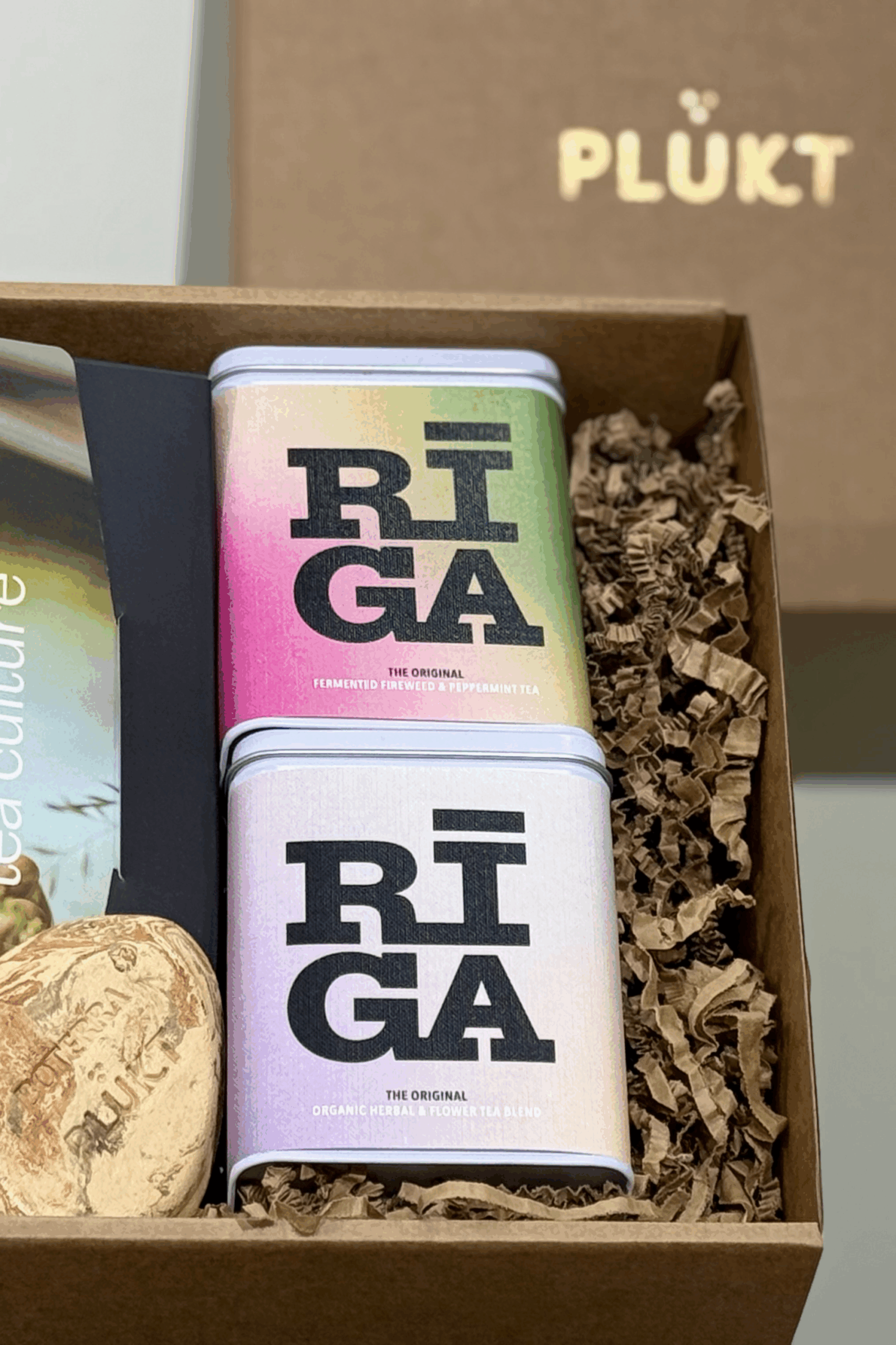 PLŪKT x RĪGA collection teas – both exquisite flavours that embody Riga’s creative spirit and the strength of Northern nature. One – ernegy-boosting with fermented fireweed and mint, the other is herbal & flower tea blend. Colorful and aromatic.