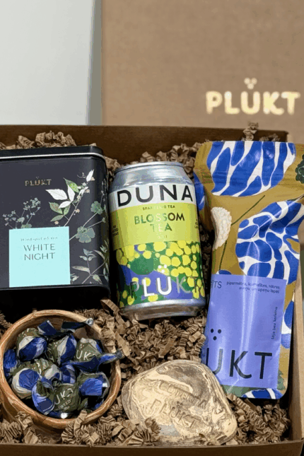 PLŪKT herbal teas are produced with vibrant and aromatic plants harvested from organically certified wild meadows and forests. The plants are dried using wind and solar energy, preserving their natural characteristics like full inflorescences and leaves. This allows you to enjoy more authentic taste, color and effect of the tea compared to farmed teas. Enjoy the power of Nature!