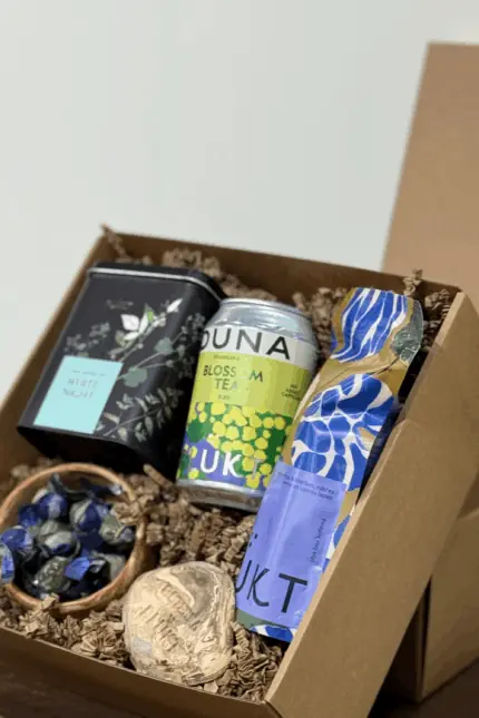A gift to impress with - the perfect gift for a family, everyone will find what they most enjoy is this gift set. From fireweed "matcha" chocolate triffles, to relaxing blended teas and sparkling herbal blossom tea. The set is elegantly packaged in a brown designer box with decorative filling and a postcard for a personalized greeting.